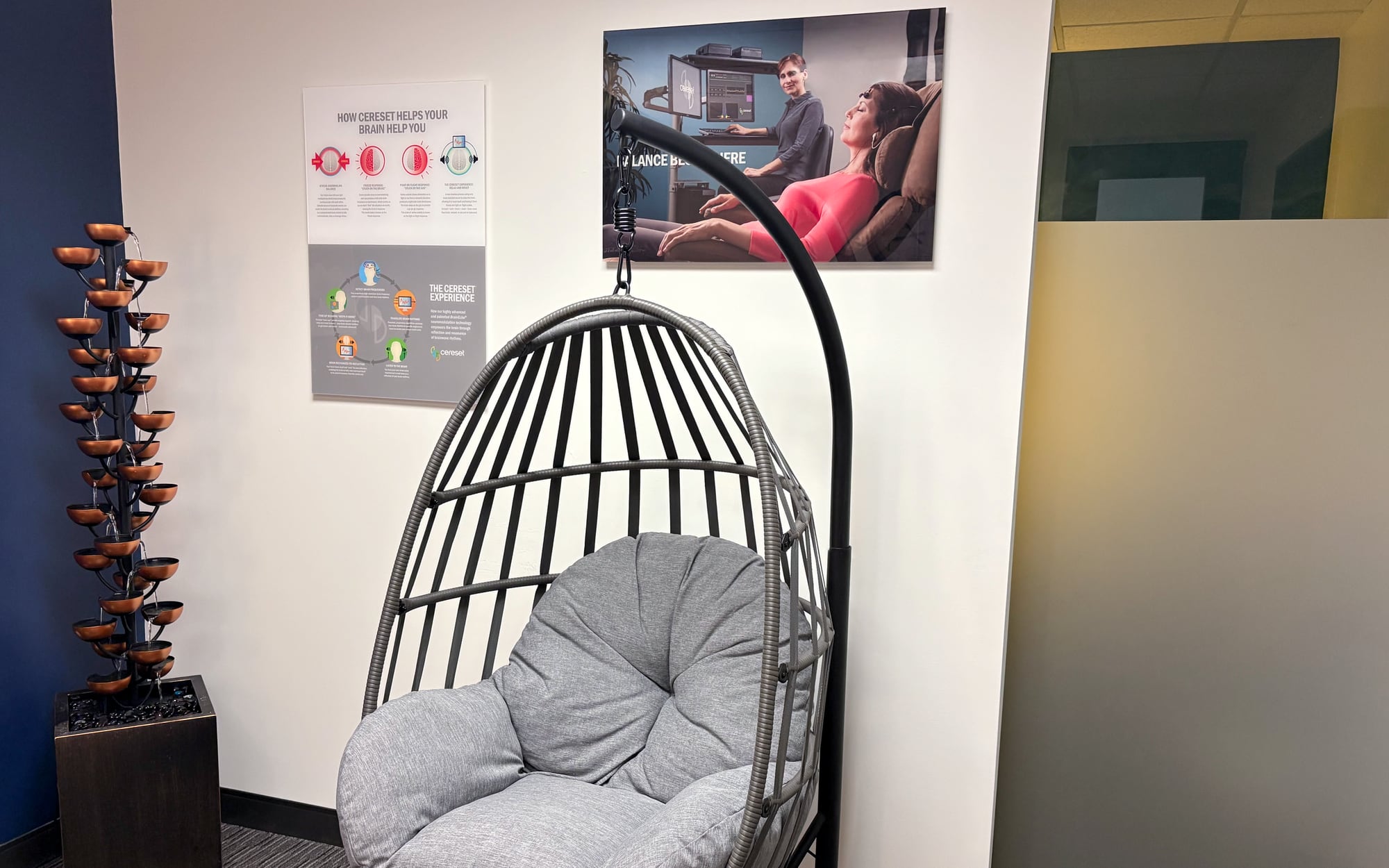 Cereset is a wellness experience that helps you relax your brain, and your own brain will take it from there. Once relaxed, your brain can let go of ‘stuck’ stress, manage stress, restore hope, and finally achieve restful sleep. This non-invasive process is possible through the patented BrainEcho® neuromodulation technology that empowers the brain to fully relax, see and hear itself, and reset to its natural balance from the inside out. There is no outside intervention, stimulus, or medication of any kind. The brain does its own work while you relax or nap quietly in a comfortable chair.