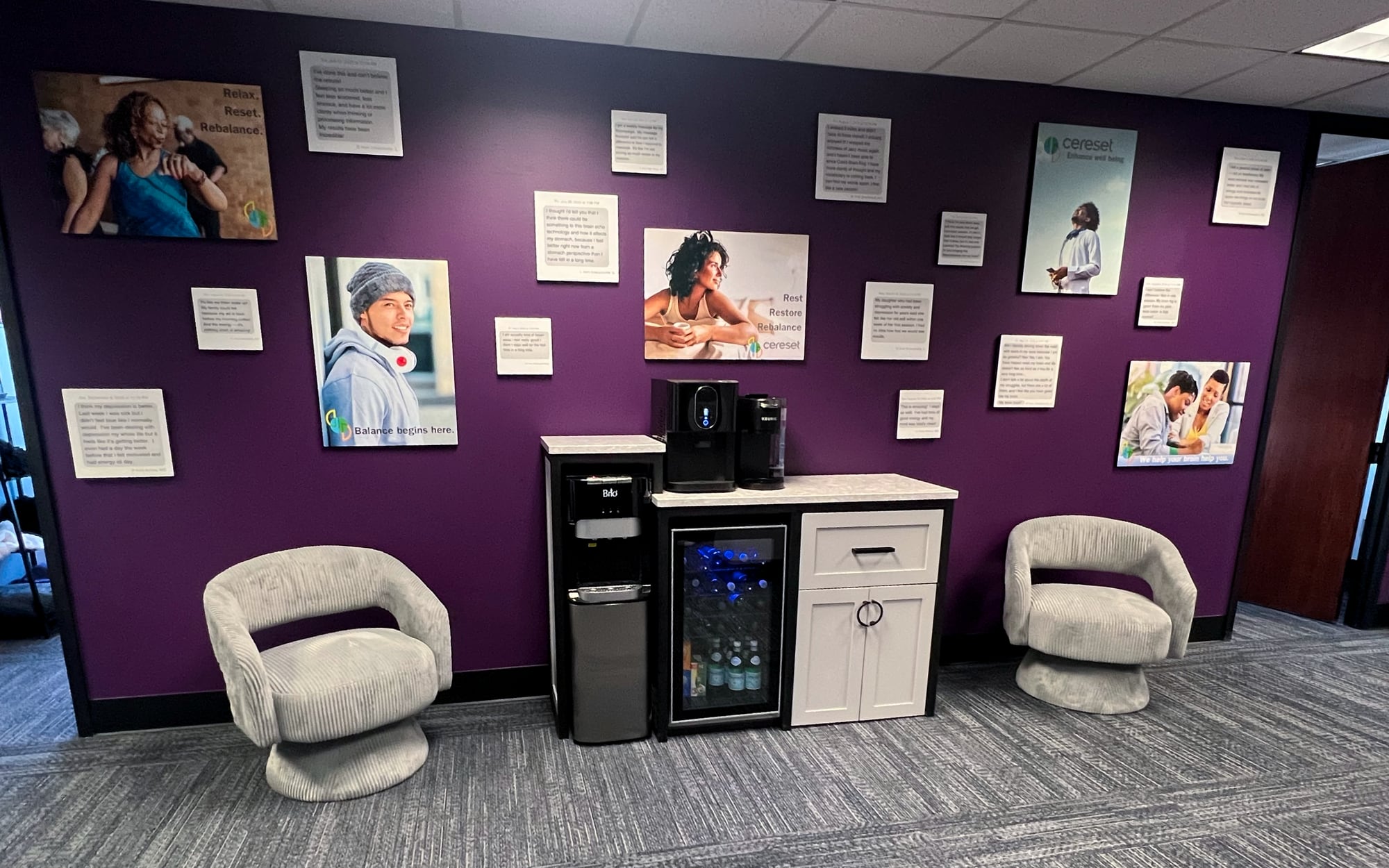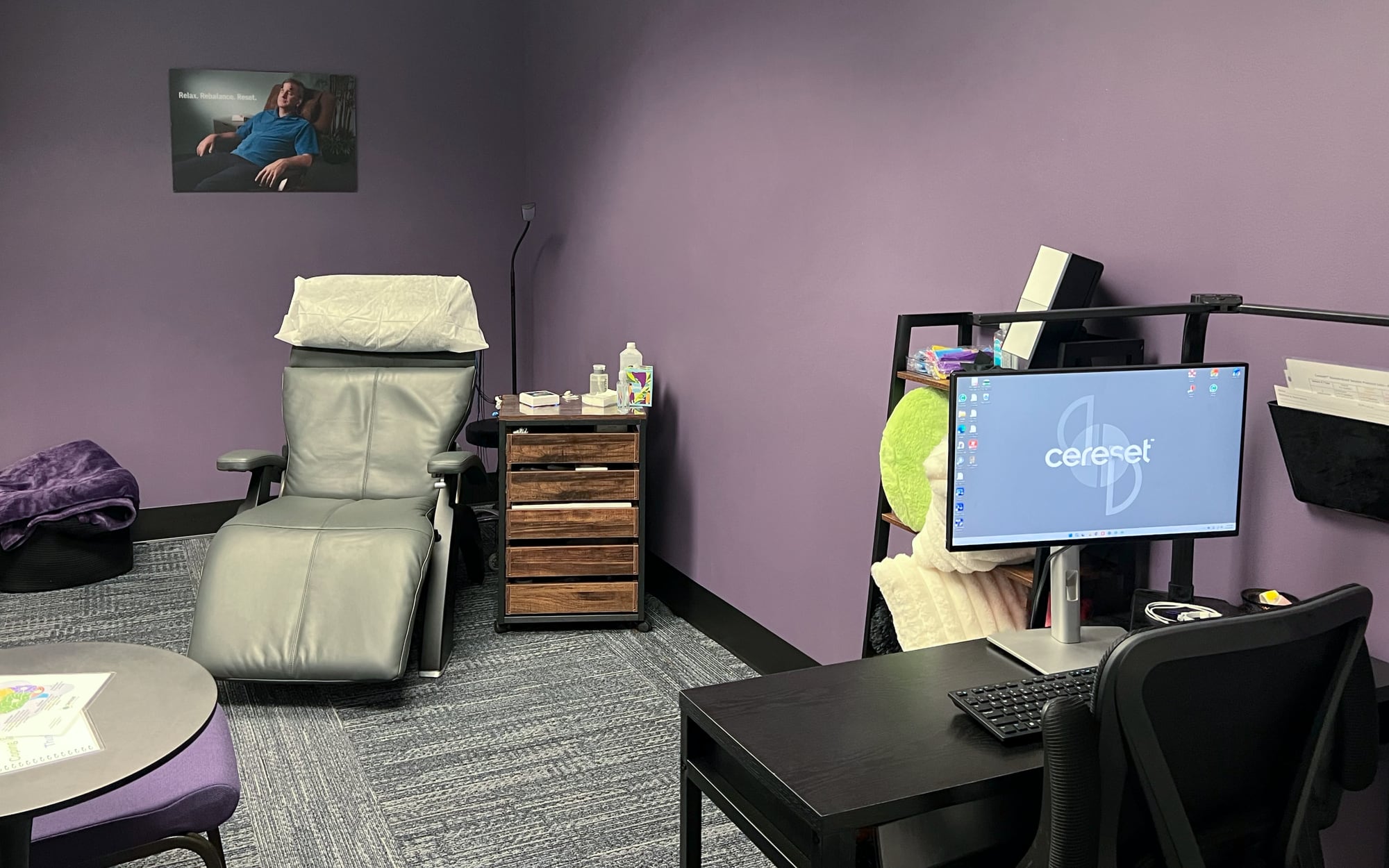 Cereset is a wellness experience that helps you relax your brain, and your own brain will take it from there. Once relaxed, your brain can let go of ‘stuck’ stress, manage stress, restore hope, and finally achieve restful sleep. This non-invasive process is possible through the patented BrainEcho® neuromodulation technology that empowers the brain to fully relax, see and hear itself, and reset to its natural balance from the inside out. There is no outside intervention, stimulus, or medication of any kind. The brain does its own work while you relax or nap quietly in a comfortable chair.